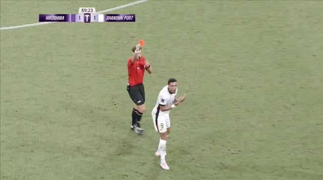 上海海港客场挑战广岛三箭,比赛来到常规时间的最后一分钟,上海海港后场断球准备快速反击,莱昂纳多一脚直塞找前场插上的古斯塔沃。古斯塔沃面对两人的夹防,为了快速摆脱防守,对抗中推倒了荒木隼人。